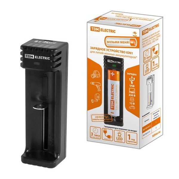 ЗУ TDM 0112 1-слот 10440/18650/26650 0.05-0.1A, кабель micriUSB