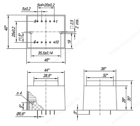 Номера выводов первичной обмотки: 1-5