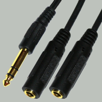 Кабель переходник 6.3шт - 2х6.3гн 0.3м пл.золото