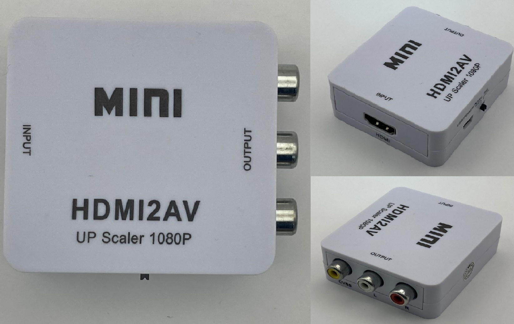 Конвертер RCA "гн" (1-video, 2-audio) -> HDMI "гн", питание от USB кабеля