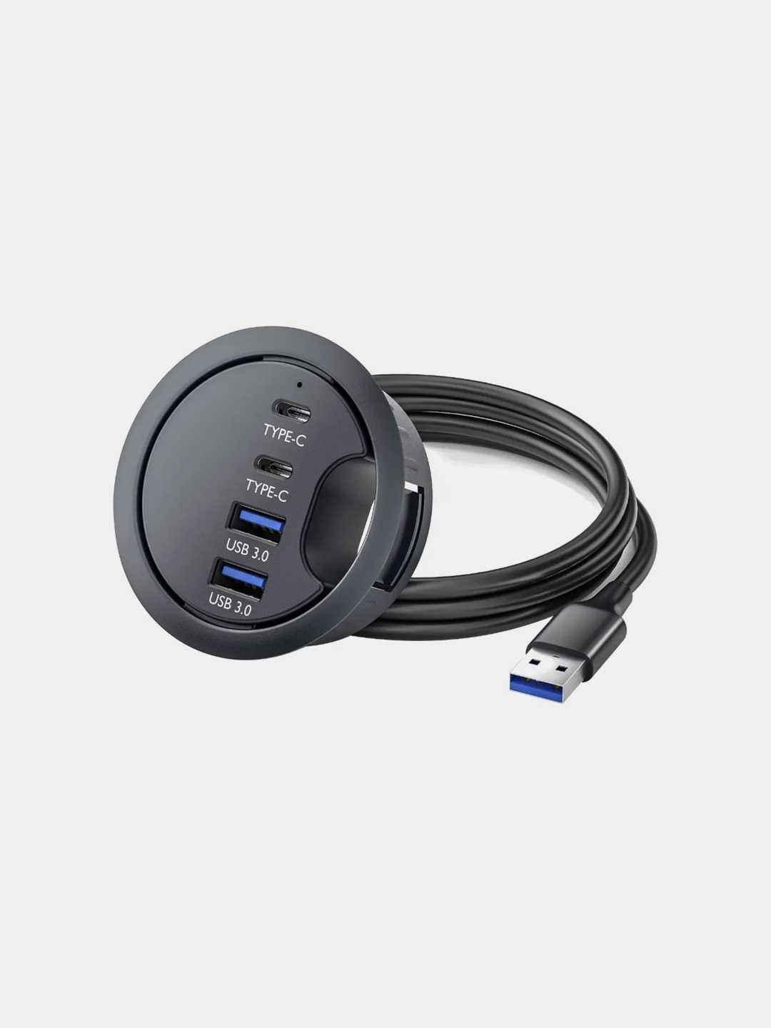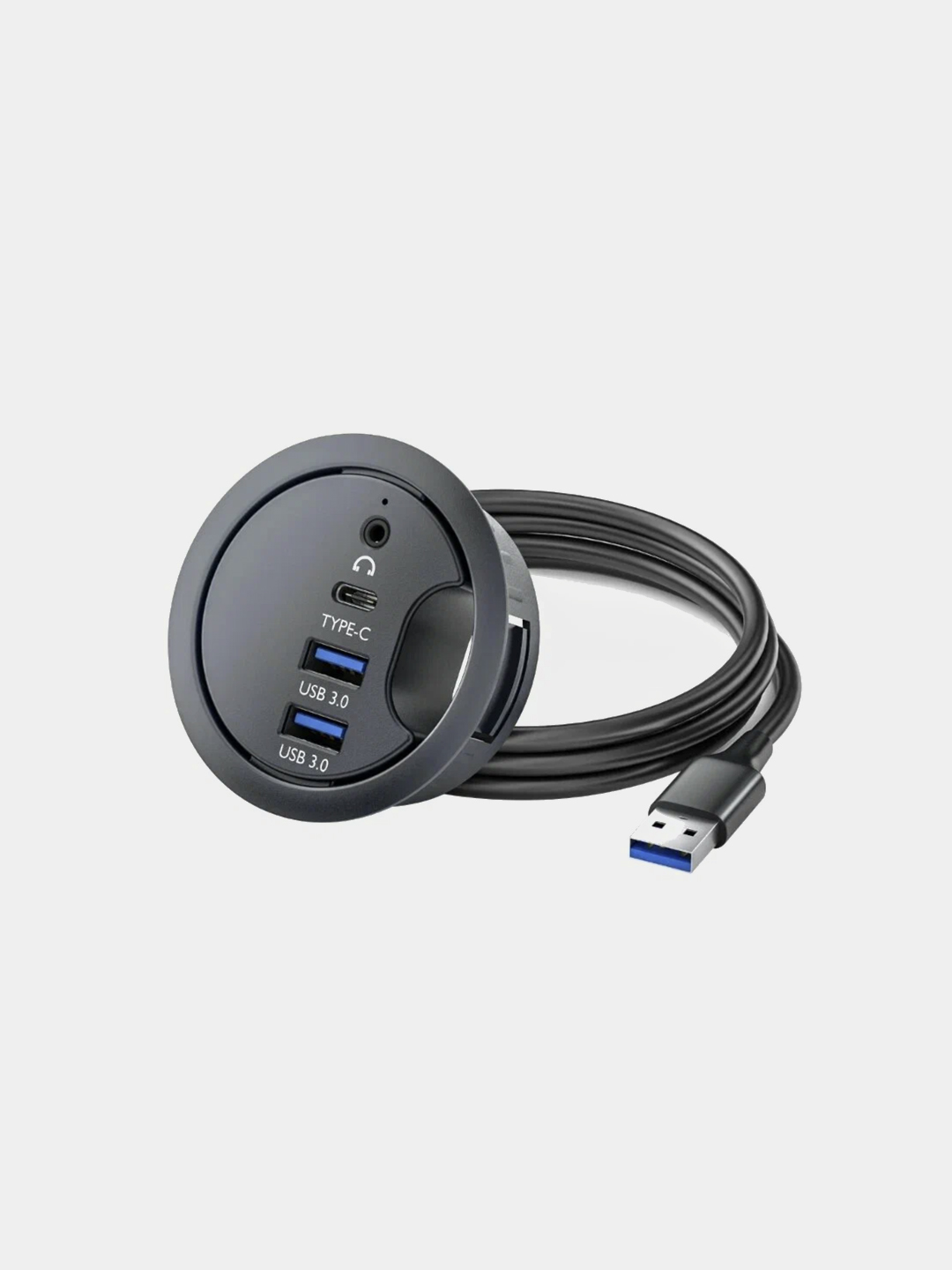 Заглушка для стола D50мм (USB3.0+Usb3.0+Type-C+3.5мм) черный
