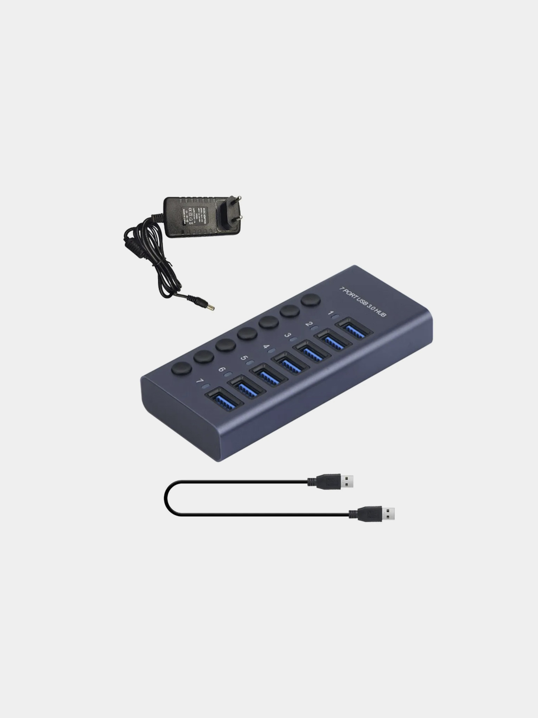 USB 3.0 разветвитель 7 портовый Q7E (питание бп.12v3a + кабель USB3.0 A-A)